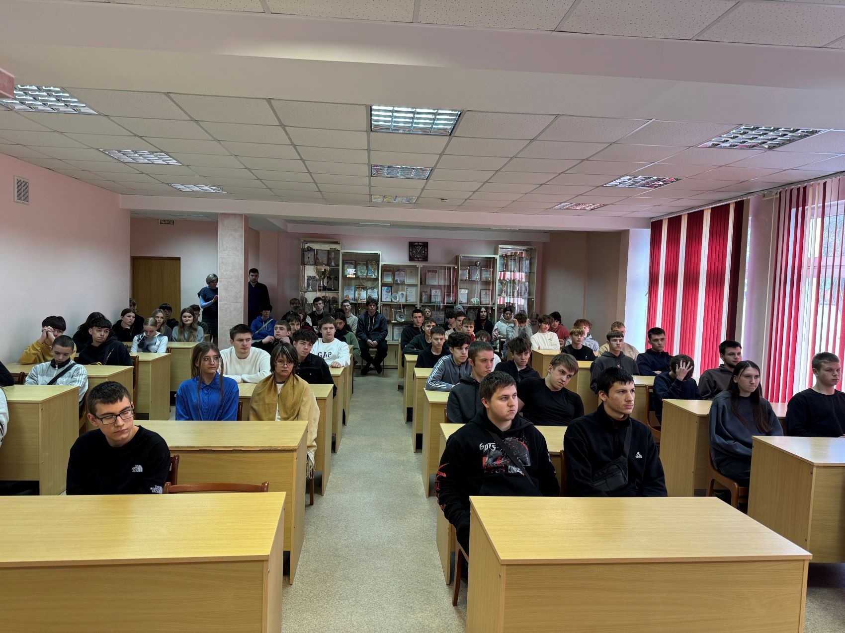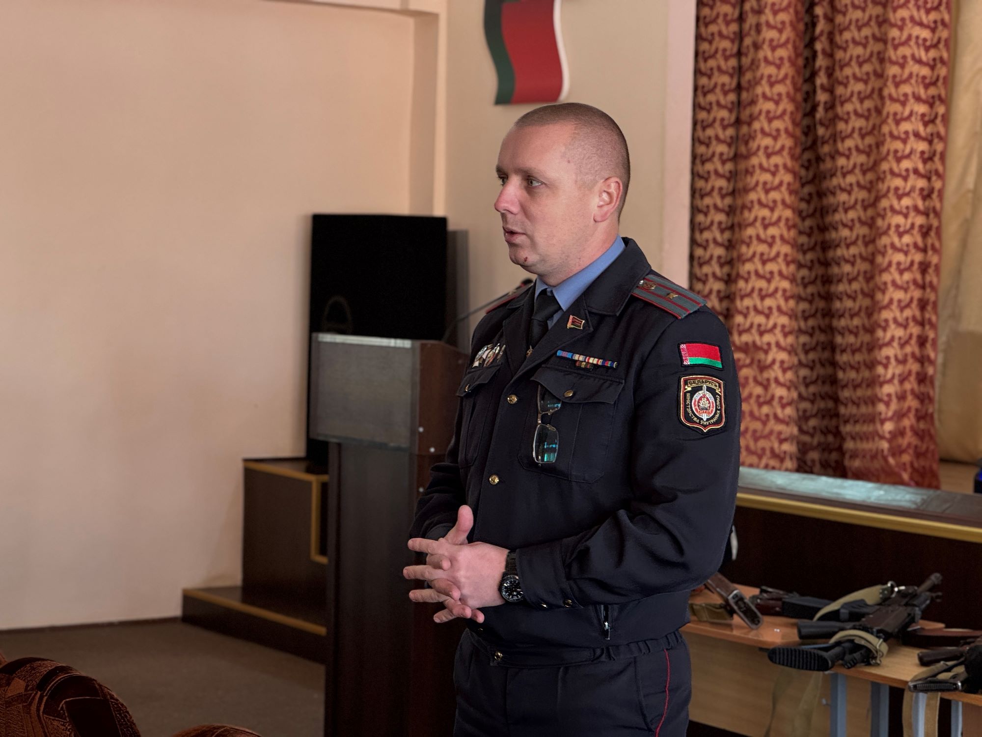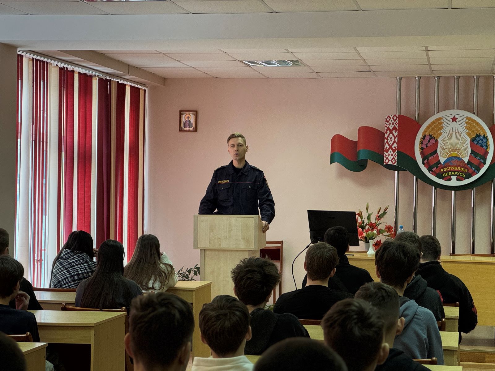 С учащимися колледжа провел встречу участковый инспектор по делам несовершеннолетних капитан милиции Масель Андрей Вячеславович, который затронул вопросы ответственности за подписку на экстремистские каналы, административной, уголовной ответственности несовершеннолетних за нарушение законодательства в сфере информационных технологий, антинаркотического закона.