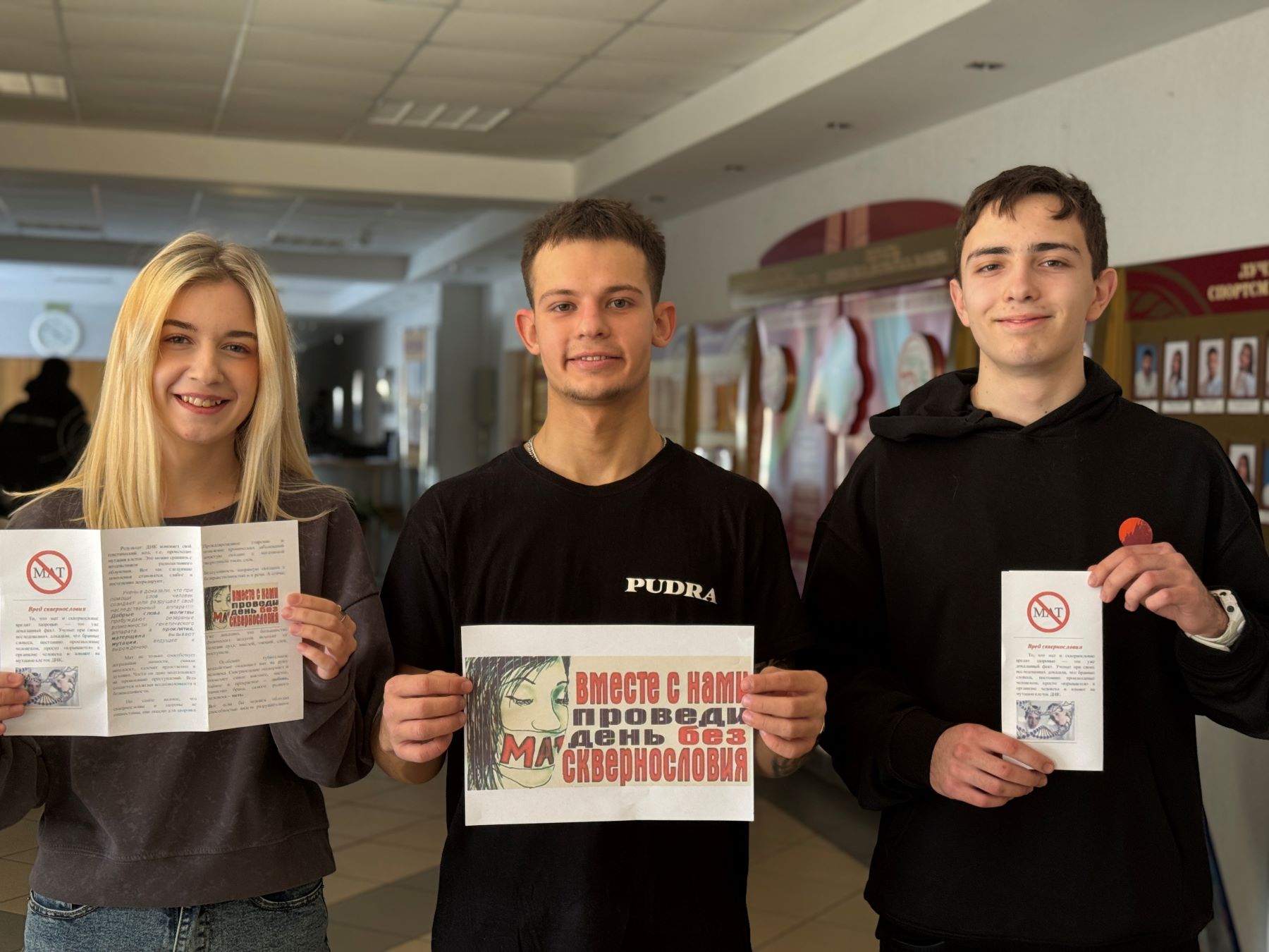 В рамках Недели правовых знаний 2 февраля прошла акция "Мат не наш формат". Учащиеся изготовили информационные буклеты о вреде ненормативной лексики, её влиянии на общение и правовых последствиях. Также был организован просмотр и обсуждение фильма о сквернословии.