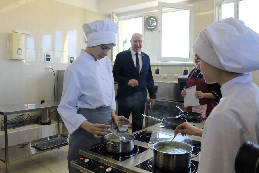 Юрий Караев лично пообщался с учащимися колледжа, побывал в кабинетах и учебно-производственных мастерских.